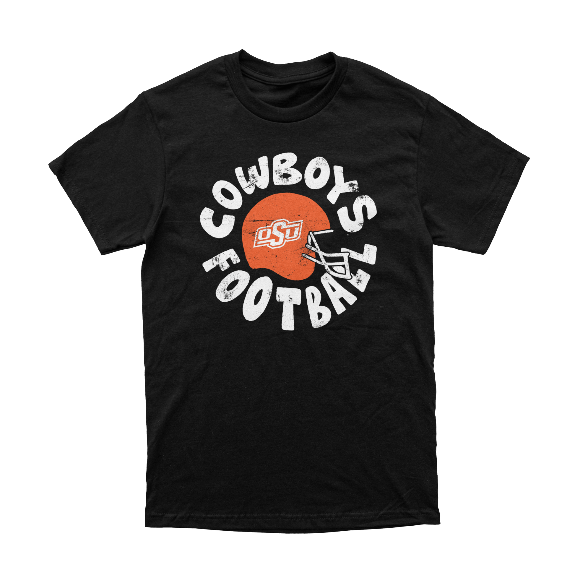 Get game day ready with our Cowboys Football t-shirt! Featuring a retro-inspired OSU football helmet graphic and bold white lettering, this black tee captures the energy and tradition of Oklahoma State football. Whether you're in Boone Pickens Stadium or watching from home, this shirt is a winning look for any Cowboy fan. Available on its own or as the August '25 Shirt of the Month for our OSU Shirt of the Month subscribers, it’s the perfect way to kick off football season in Stillwater style.